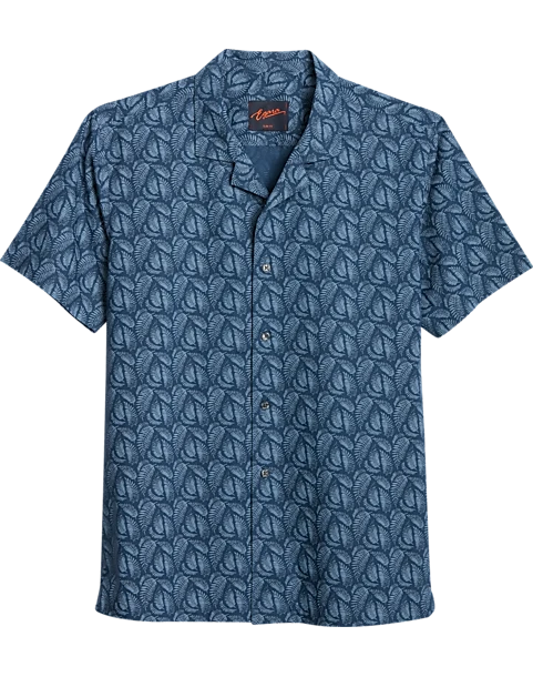 Crafted in batik fashion into a tropical fern pattern, this short-sleeved sport shirt by Egara offers a vacation-ready vibe. Woven from a cool cotton blend into trim, Slim Fit, it is both dress casual and on-trend.