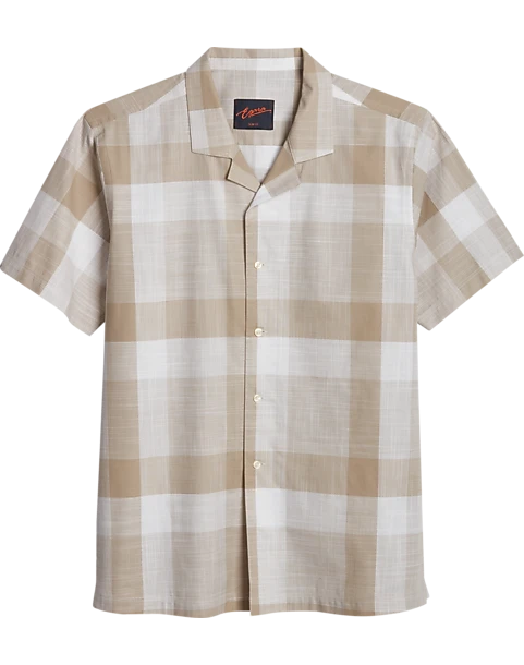 This short-sleeved sport shirt by Egara features a prominent plaid in earthy taupe tones. Cut from a breathable cotton blend into a trim, Slim Fit, it will become a dressed-down go-to in your wardrobe.