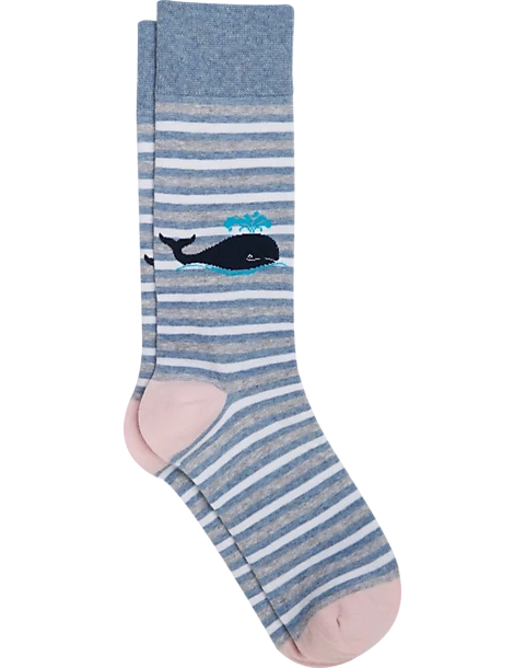Have a whale of a time with these playful socks from Egara. Blue and gray stripes are complemented by contrasting pink heels and toes.