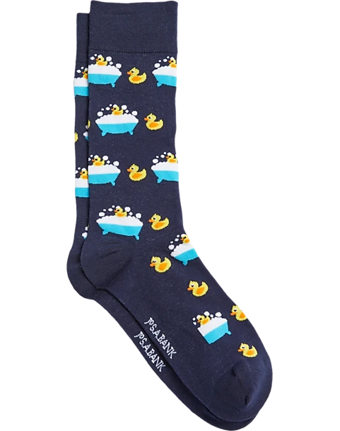 Add fun and fresh style to your look with these fun socks by Egara. Cute rubber ducks and bathtubs on a dark blue background will brighten your day.