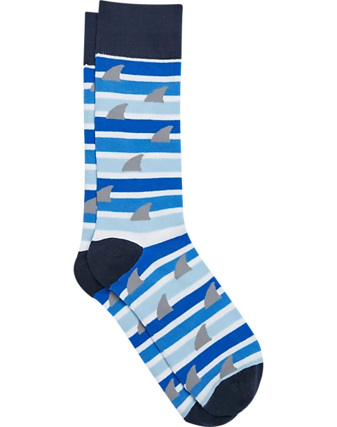 These socks by Egara take a bite out of boring. A playful pattern of shark fins poke through stripes in shades of blue that mimic the ocean.