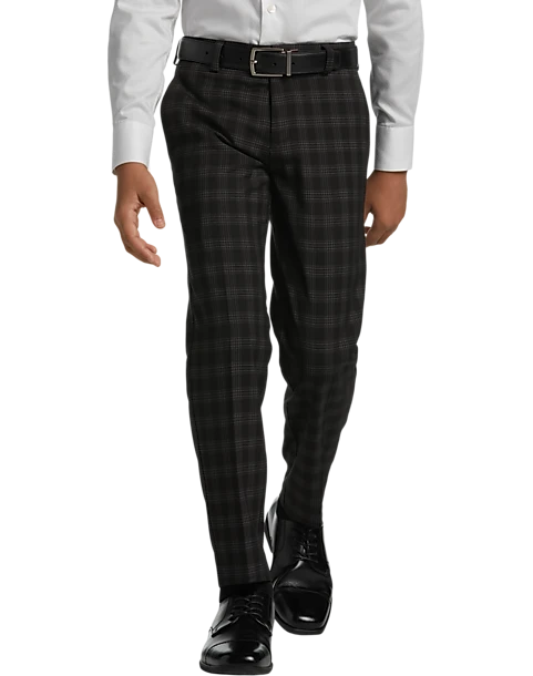 He’ll be just like the big boys in this refined and versatile two-button black plaid coat with coordinating pants. The coat features classic side vents, while the pants offer a modern, flat front.